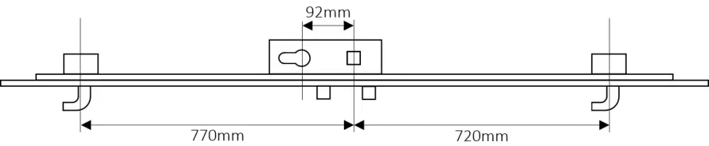 Lever to Centre of Bottom Hook: 770mm